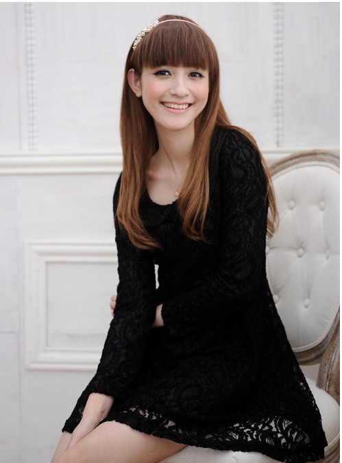 Đầm ren cổ táo màu đen