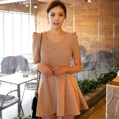 Đầm ngắn tay thanh lịch màu cafe