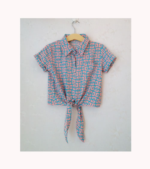 Áo sơ mi buộc vạt họa tiết ô vuông