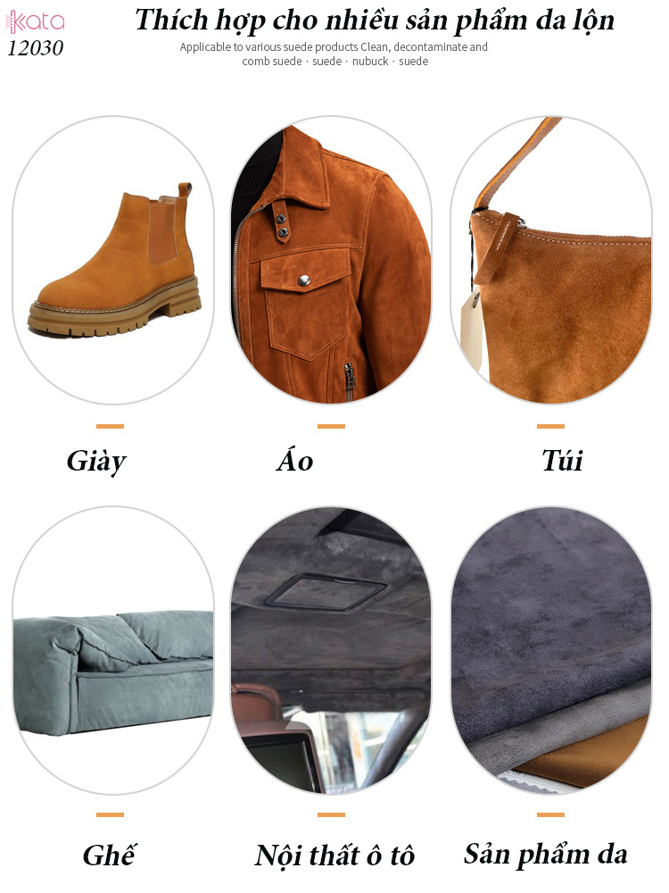 Áp dụng : Các sản phẩm có bề mặt da lộn : túi da lộn , giày da lộn , ghế da lộn , Áo da lộn ....