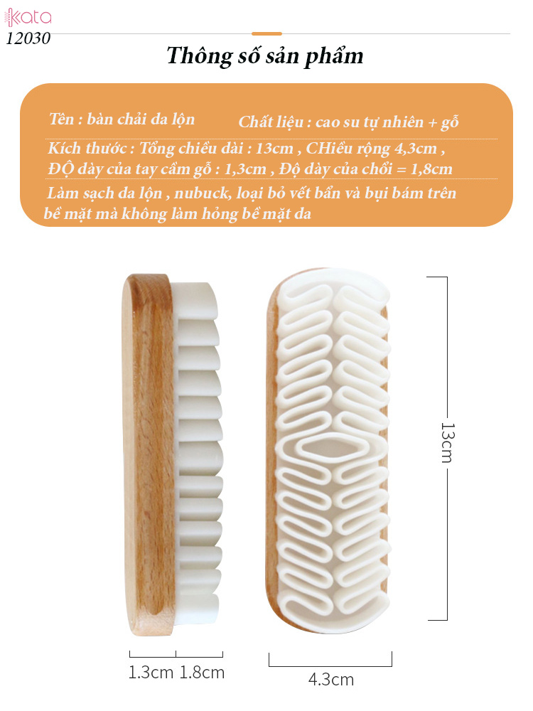 Kích thước : Tổng chiều dài : 13cm , CHiều rộng 4,3cm , ĐỘ dày của tay cầm gỗ : 1,3cm , Độ dày của chổi = 1,8cm