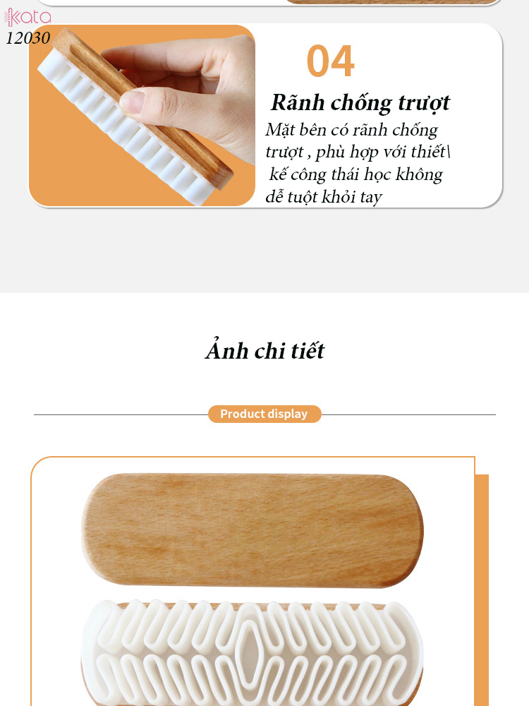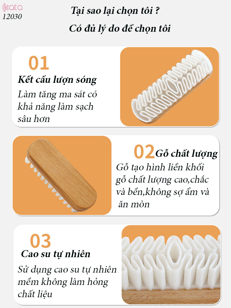 Tay cầm bàn chải làm bằng gỗ nguyên khối , Đầu bàn chải làm bằng cao su thô