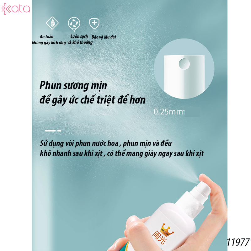 Sử dụng vòi phun nước hoa , phun mịn và đều , khô nhanh sau khi xịt , có thể mang giày ngay sau khi xịt