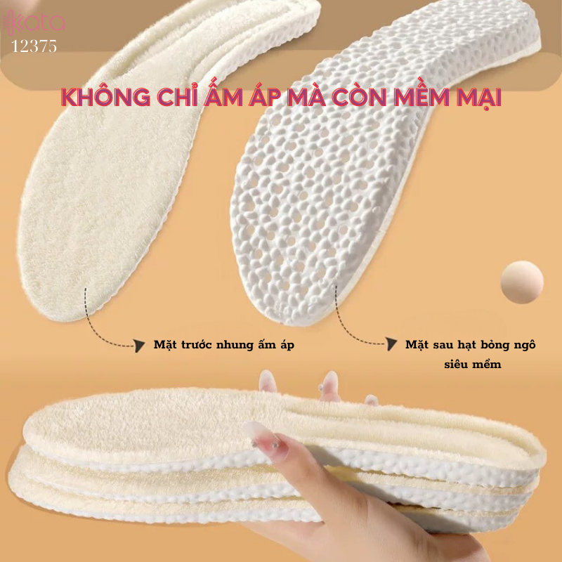 Tên sản phẩm : Đế lót giày nhung mùa thu đông,lót giày thể thao siêu mềm,chống sốc,thấm mồ hôi Nam Nữ 12375