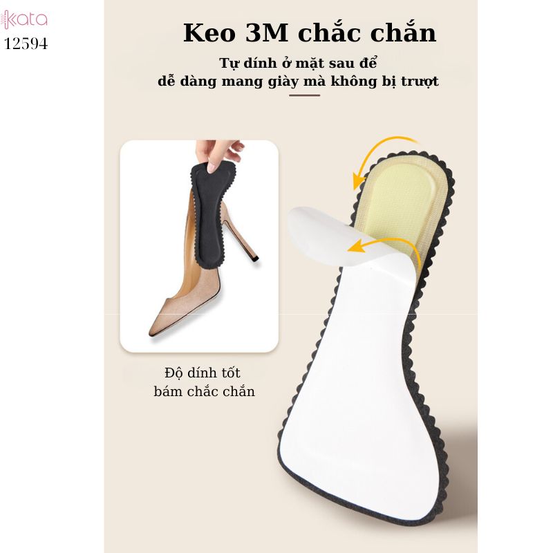 Tên sản phẩm : Lót giày tự dính mùa hè nữ,chống trượt và thoáng khí,thấm mồ hôi,đệm 3 điểm cho giày cao gót 12594