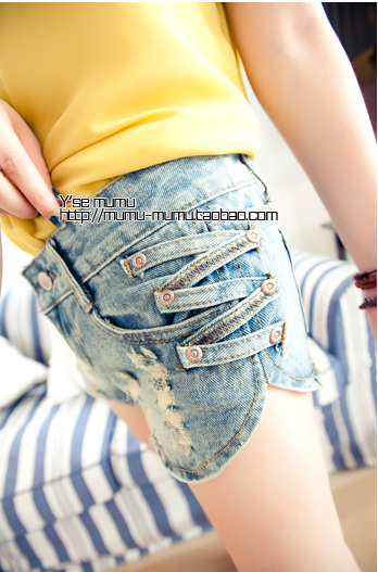 Quần short denim cao bồi
