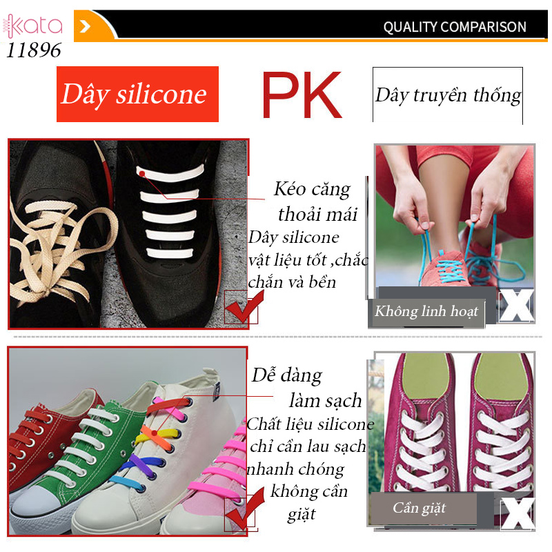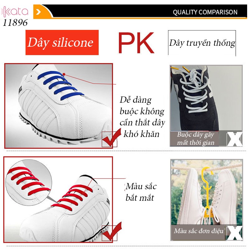 Dây giày Silicone có những đặc tính sau : Thuận tiện , nhanh chóng không mất thời gian buộc dây giày