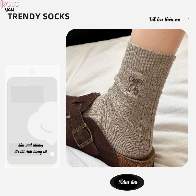 Ưu điểm : Công nghệ kim đôi ( bên trong và bên ngoài đều giống nhau) không có chỉ thừa ,không bị lỏng chân,không tuột,mỏng và thoáng khí,chất liệu cotton mềm mại , không thô cứng , giữ nguyên dáng tất sau nhiều lần giặt, không xù lông