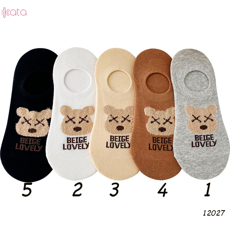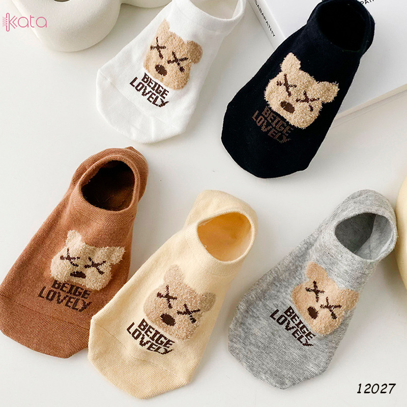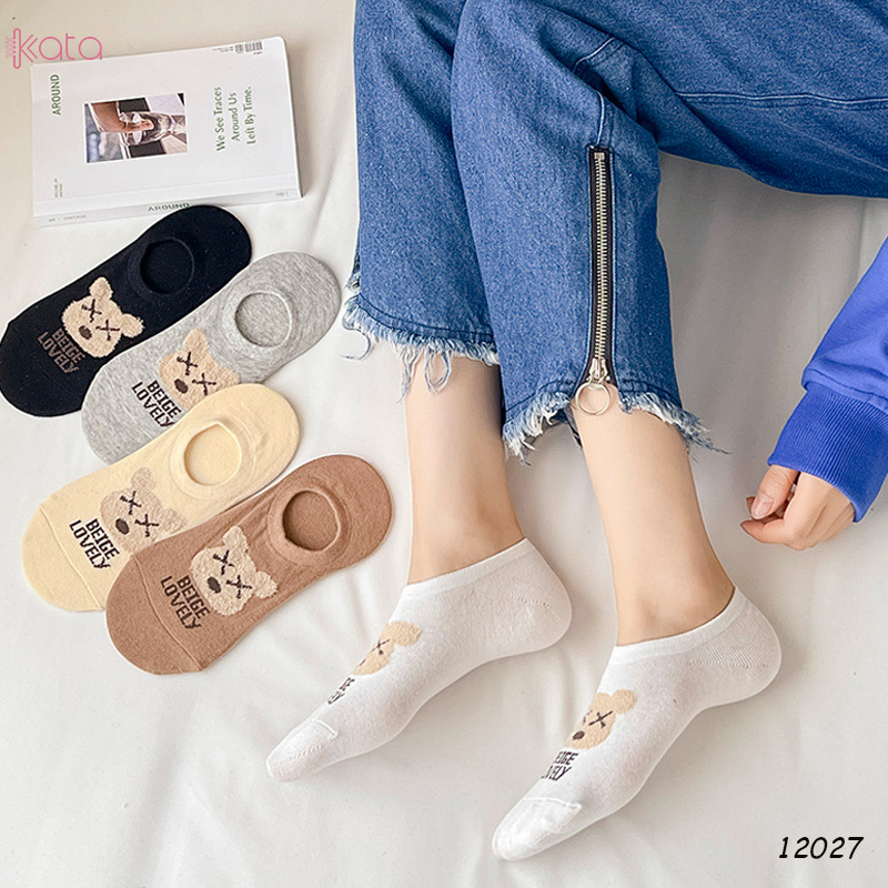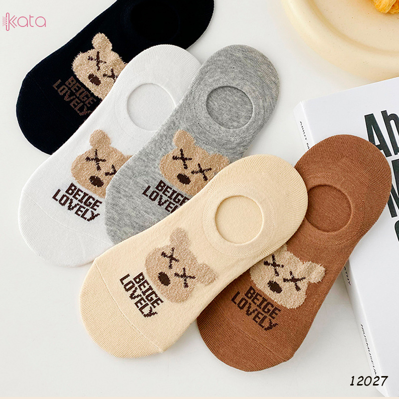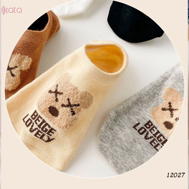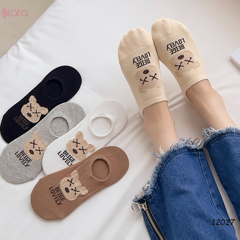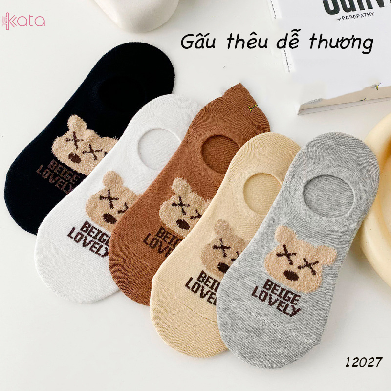 Tất vớ thuyền thêu gấu , tất vải bông mềm có silicone chống rớt gót nữ 12027